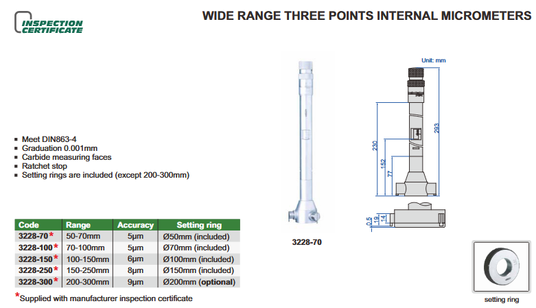 Štapni mikrometar za unutarnje mjerenje u 3 točke, 50-70 mm, Insize