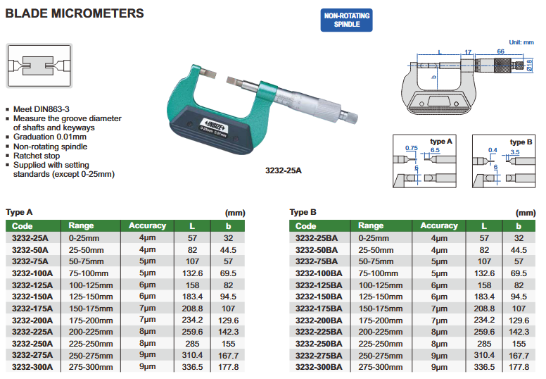 Mikrometar - za utore, 0-25 mm, Tip B, Insize