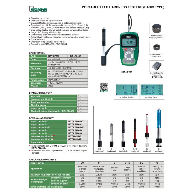 Mobilni uređaj za ispitivanje tvrdoće, Insize