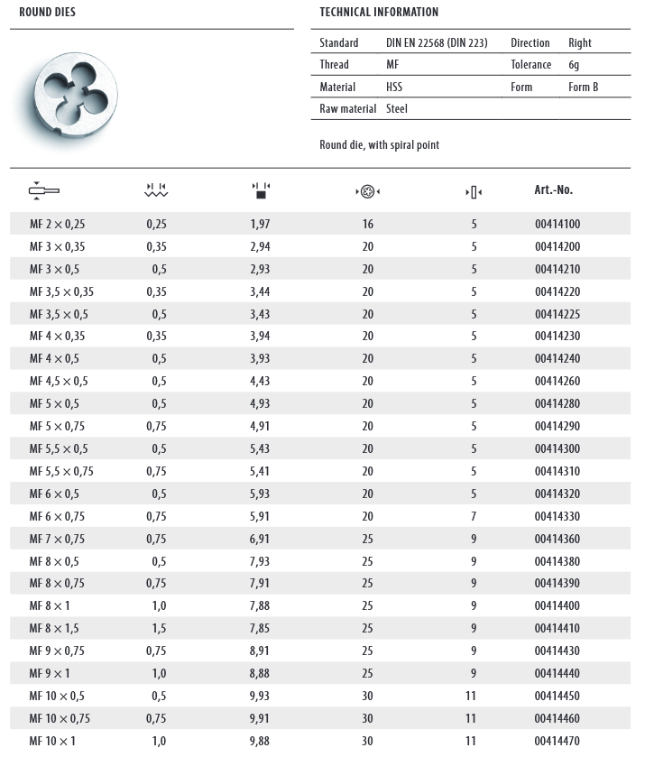 nareznice nareznica metrički fini m8x0,5 m5-m10 hss gsr din 223 desni 25x9