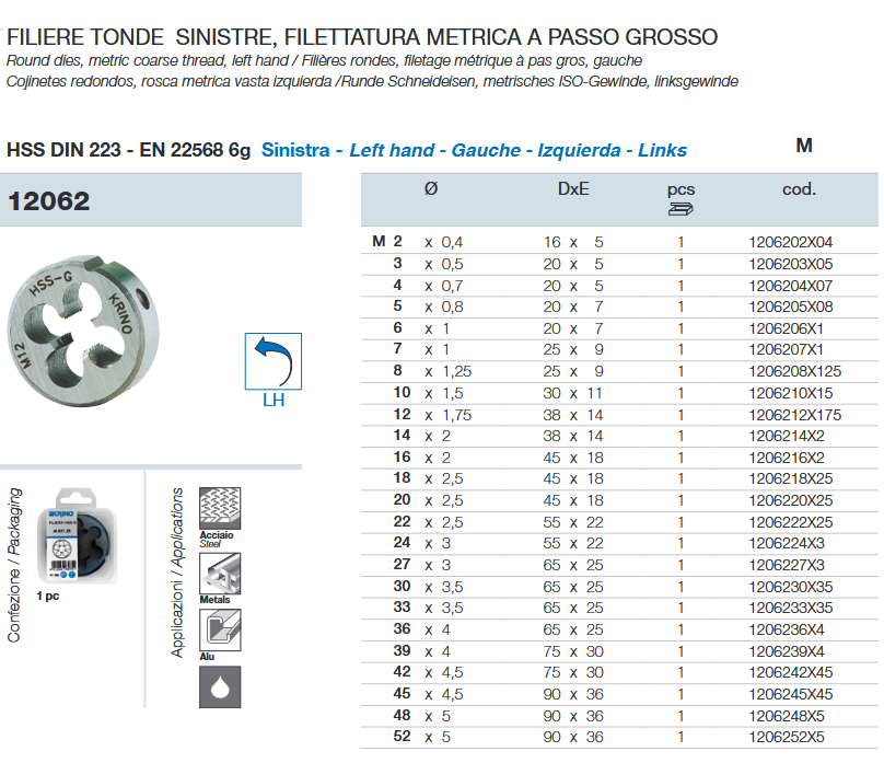 nareznice metrički fini m22x2.5 m20-m25 lijevi krino hss-g din 223 55x22