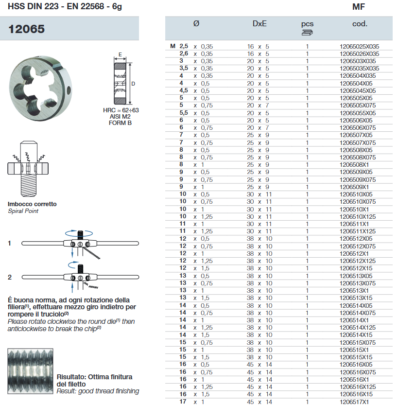 nareznice metrički fini m6x0.5 m5-m10 krino hss-g din 223 desni 20x5