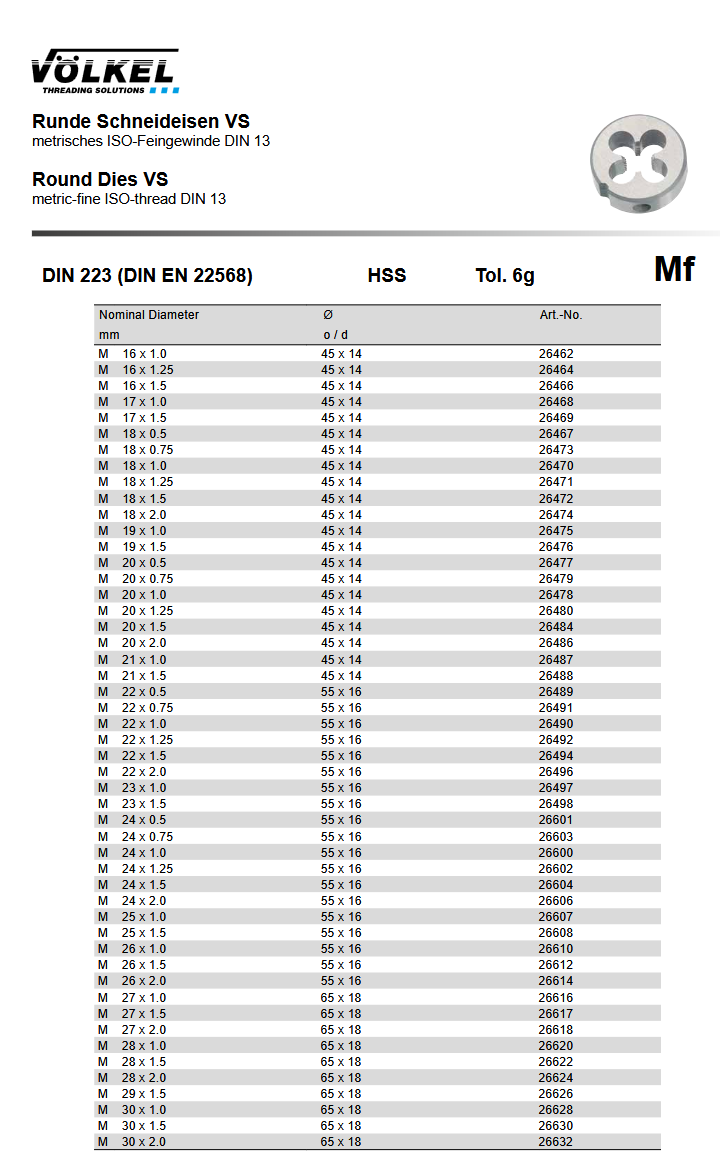 volkel völkel nareznice metrički fini m18x1.5 hss din 223 desni 45x14