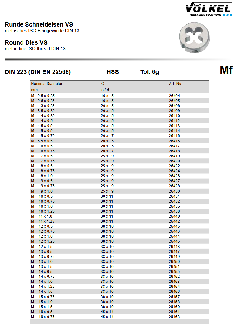 volkel völkel nareznice metrički fini m8x1.0 hss din 223 desni 25x9