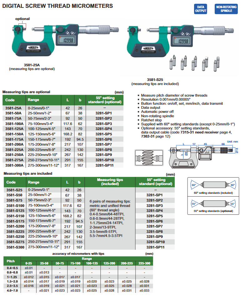 Nastavak mikrometra za navoje 55° 75-100mm, Insize