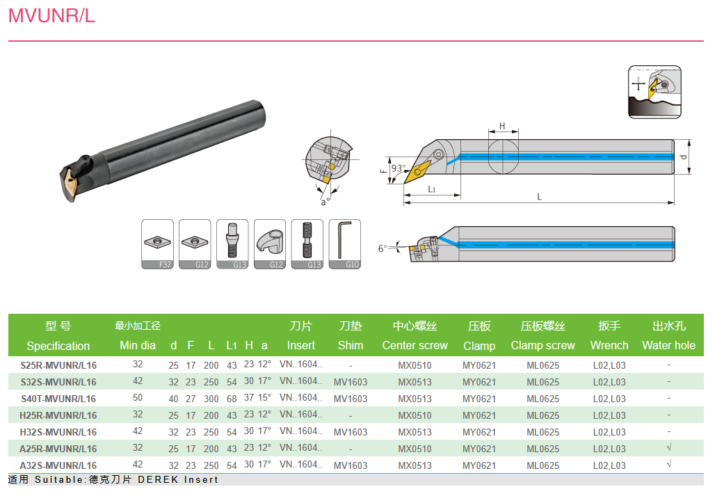 Držač pločice za tokarenje S25R-MVUNR 16, Derek