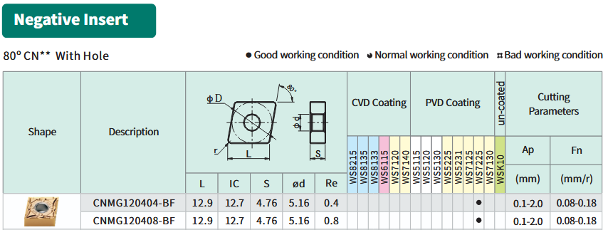 Pločica CNMG 120404-BF WS7125, Hardstone