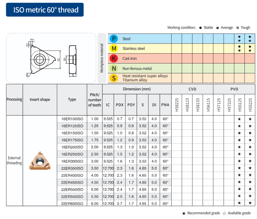 Pločica za vanjski navoj 16ER150ISO HS5225, Hardstone