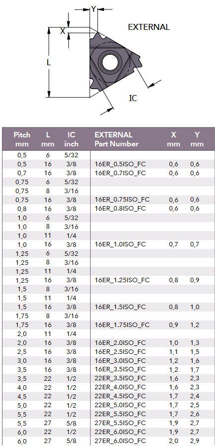 Pločica za vanjski navoj 22ER 5.0ISO FC, SmiCut