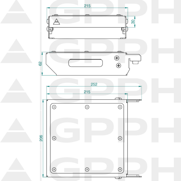 Dimenzije police iznose 252 × 306 × 62 mm. Dostupna je u izvedbi za stolove sa sustavom rupa φ16 mm i φ28 mm.