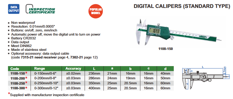 Pomično mjerilo (1108) - digitalno, standardno, s kotačićem, 0-150 mm, Insize