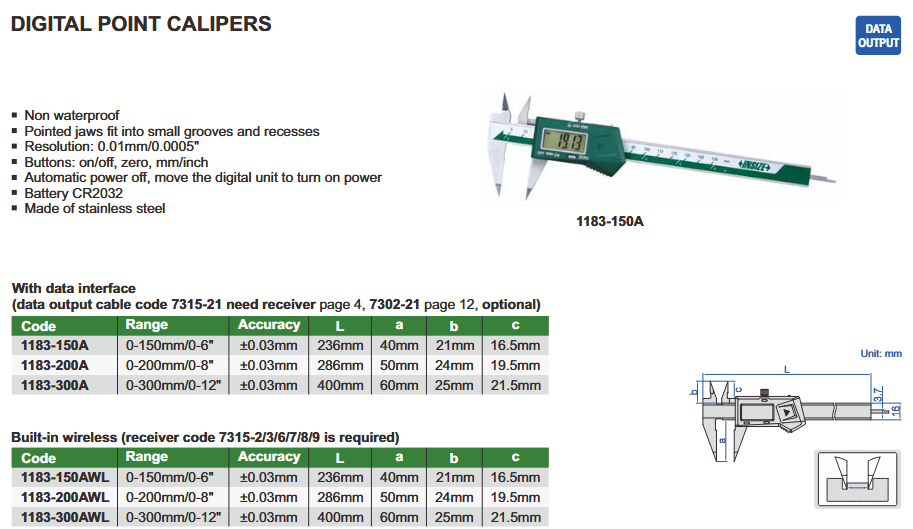 - Rezolucija: 0,01 mm / 0,0005"