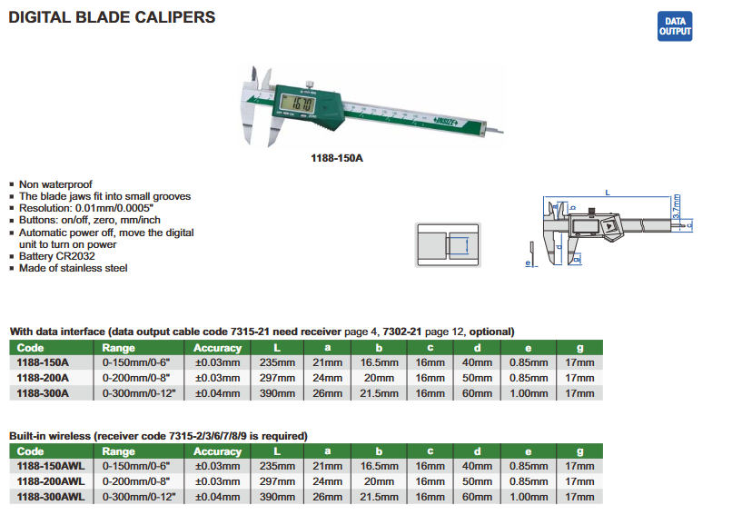Pomično mjerilo - digitalno, za mjerenje uskih promjera, 0-200 mm, Insize