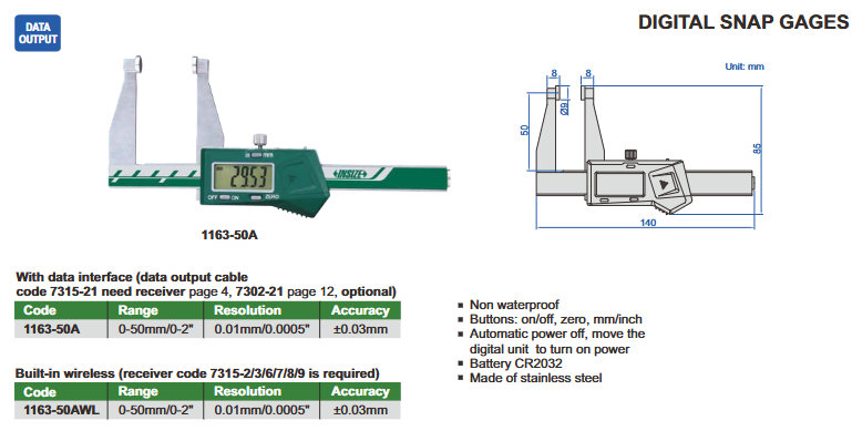 Pomično mjerilo - digitalno, za mjerenje debljine materijala, 0-50 mm, Insize