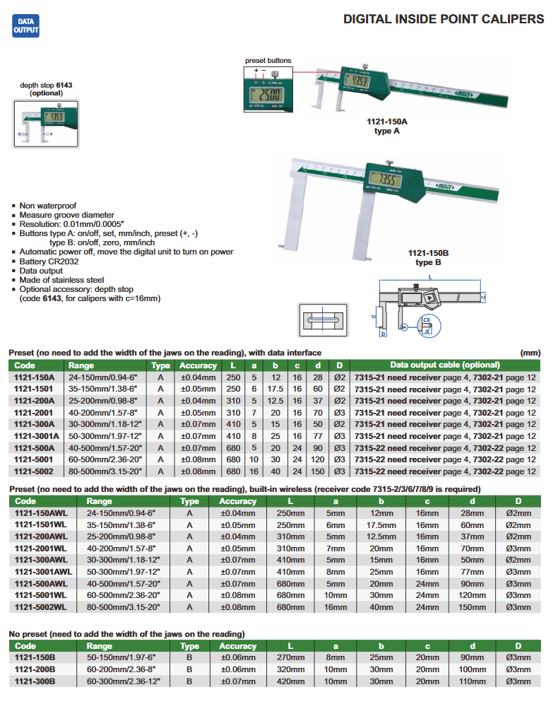 Pomično mjerilo za unutarnje utore - digitalno, 24-150 mm