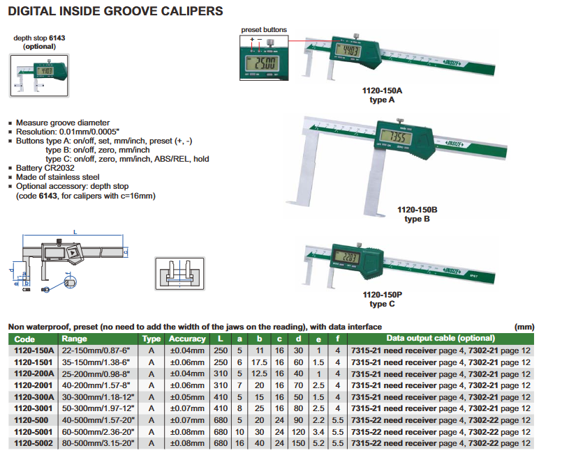 - funkcije: on/off, set, mm/inch, present (+,-)