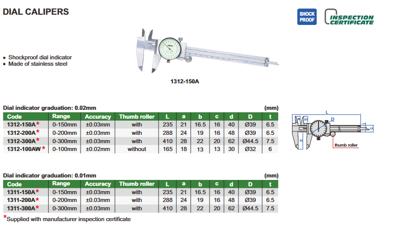 Pomično mjerilo sa satom, 0-150 mm, 0,01 mm, Insize