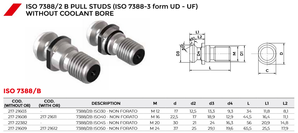 Povlačni vijak M16, ISO40 - bez provrta, Kintek