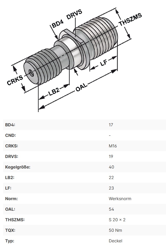 Povlačni vijak M16 s pilastim navojem S20 x 2 -za ALG-200