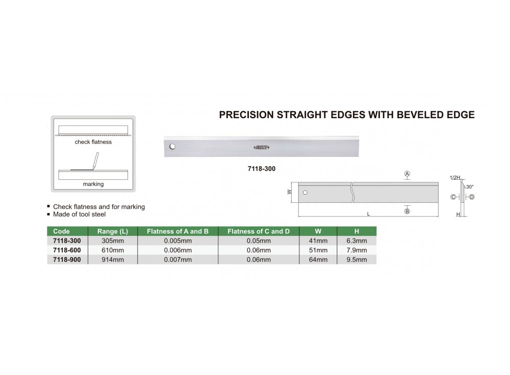 Precizno ravnalo 914 mm, sa skošenim rubom, Insize