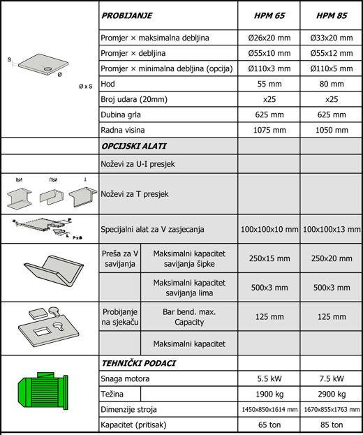 - sječka za savijanje šipki – max. kapacitet: 125 mm