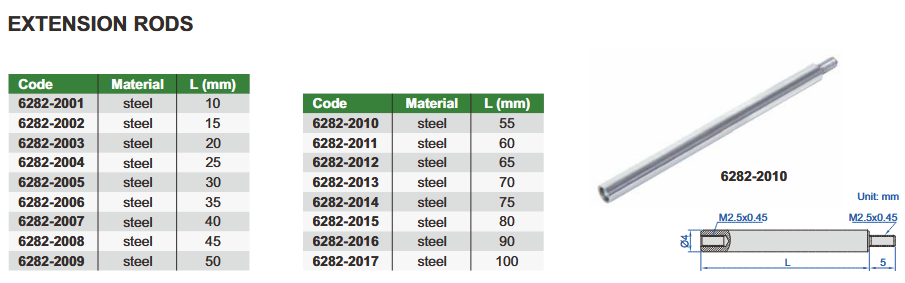 Vršak za komparator, produžetak 35 mm M2.5x0.45, Insize