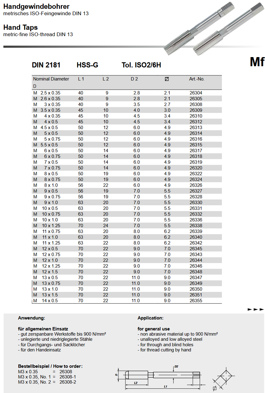 Ručni ureznik - set, MF22x2 HSS-G DIN 2181, Völkel
