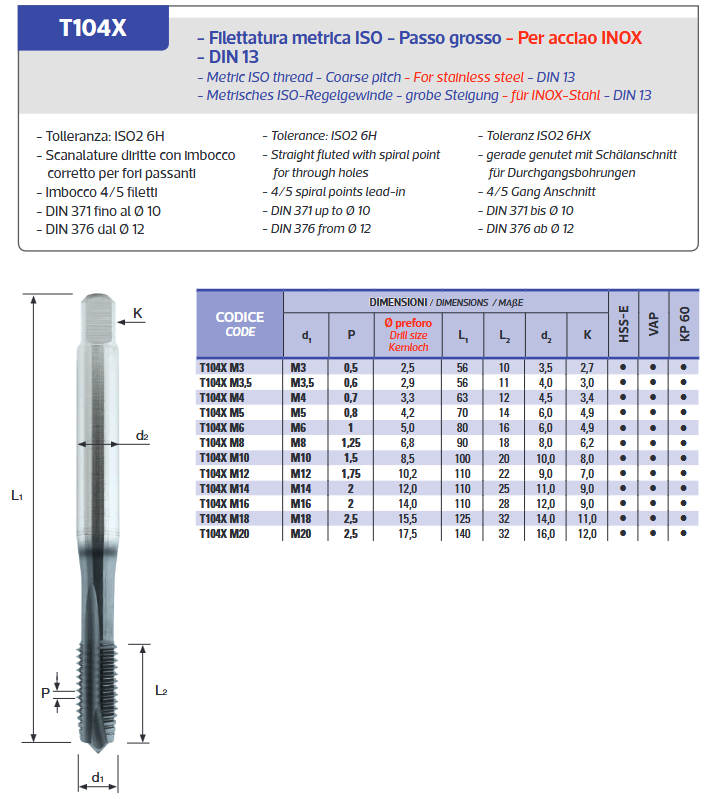 Strojni ureznik T104X, M8, HSS-E, BFT Burzoni