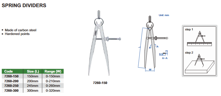 Šestar za ocrtavanje, 0-260 mm, Insize