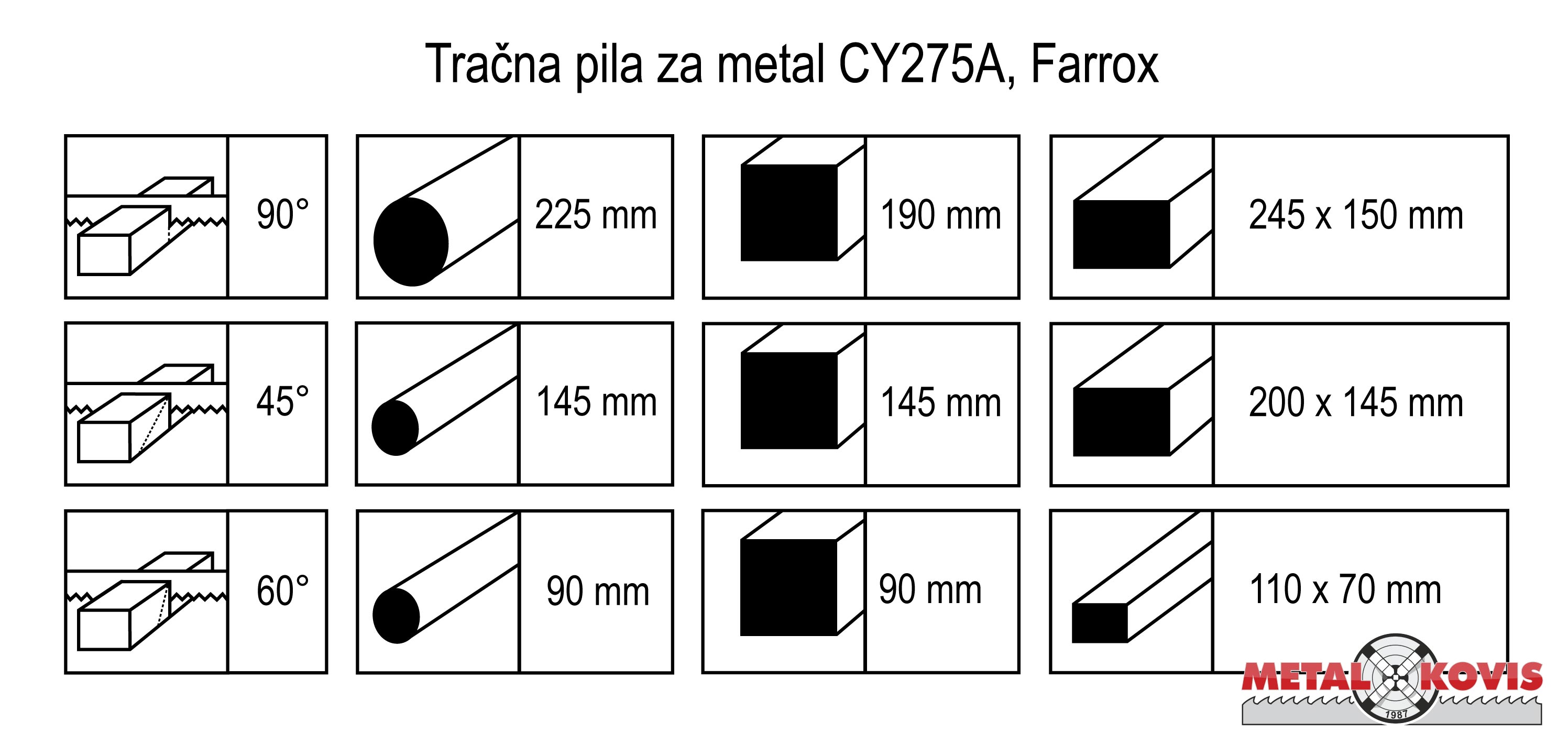 - Škripac od lijevanog željeza i jaram osiguravaju visoku stabilnost i rezanje bez vibracije