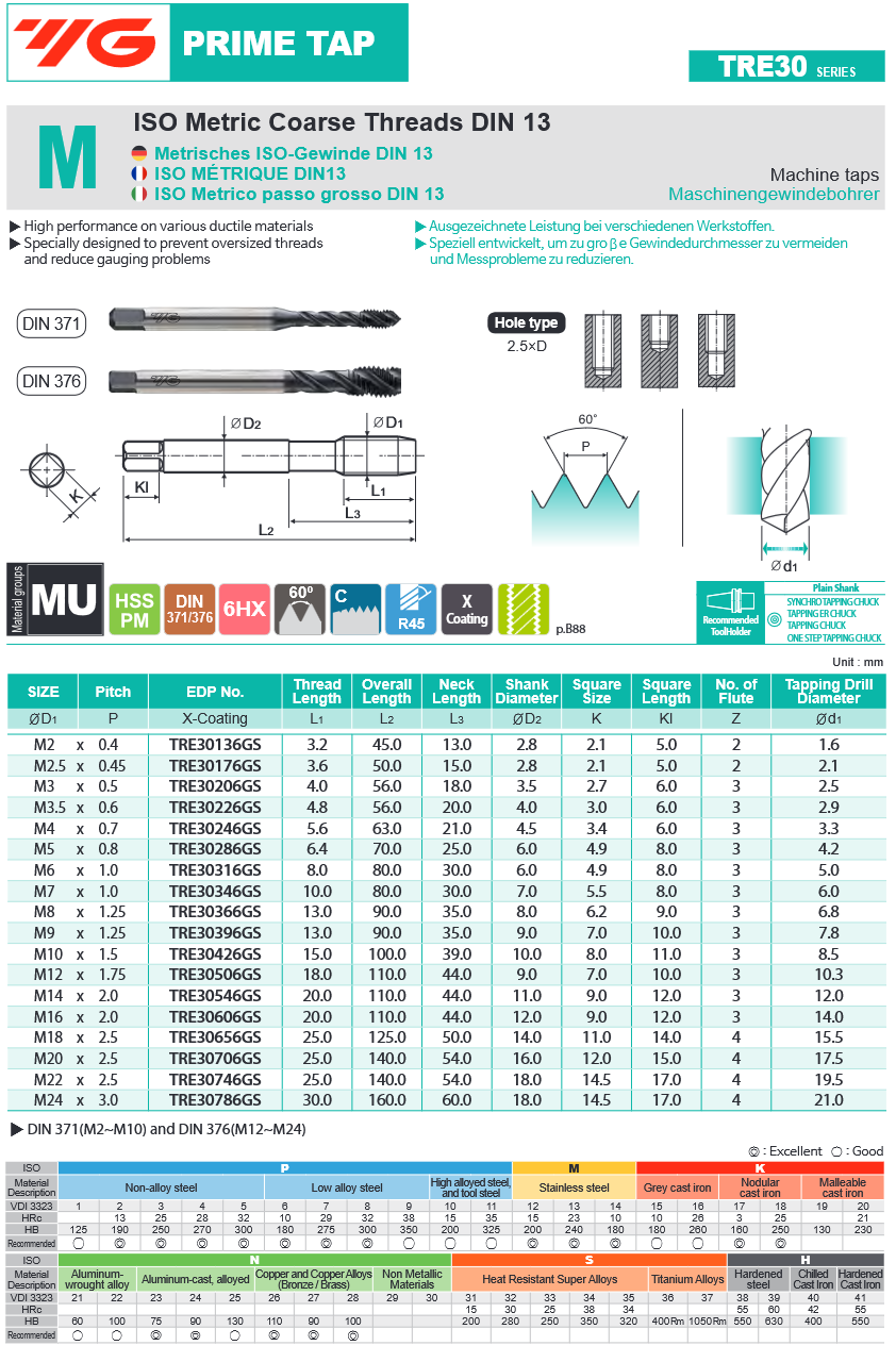 Spiralni strojni ureznik, M22 HSS-PM DIN376/C, YG-1