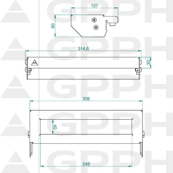 Dimenzije stalka iznose 306 × 127 × 60 mm. Dostupan je u izvedbama za sustave rupa 16 mm i 28 mm.