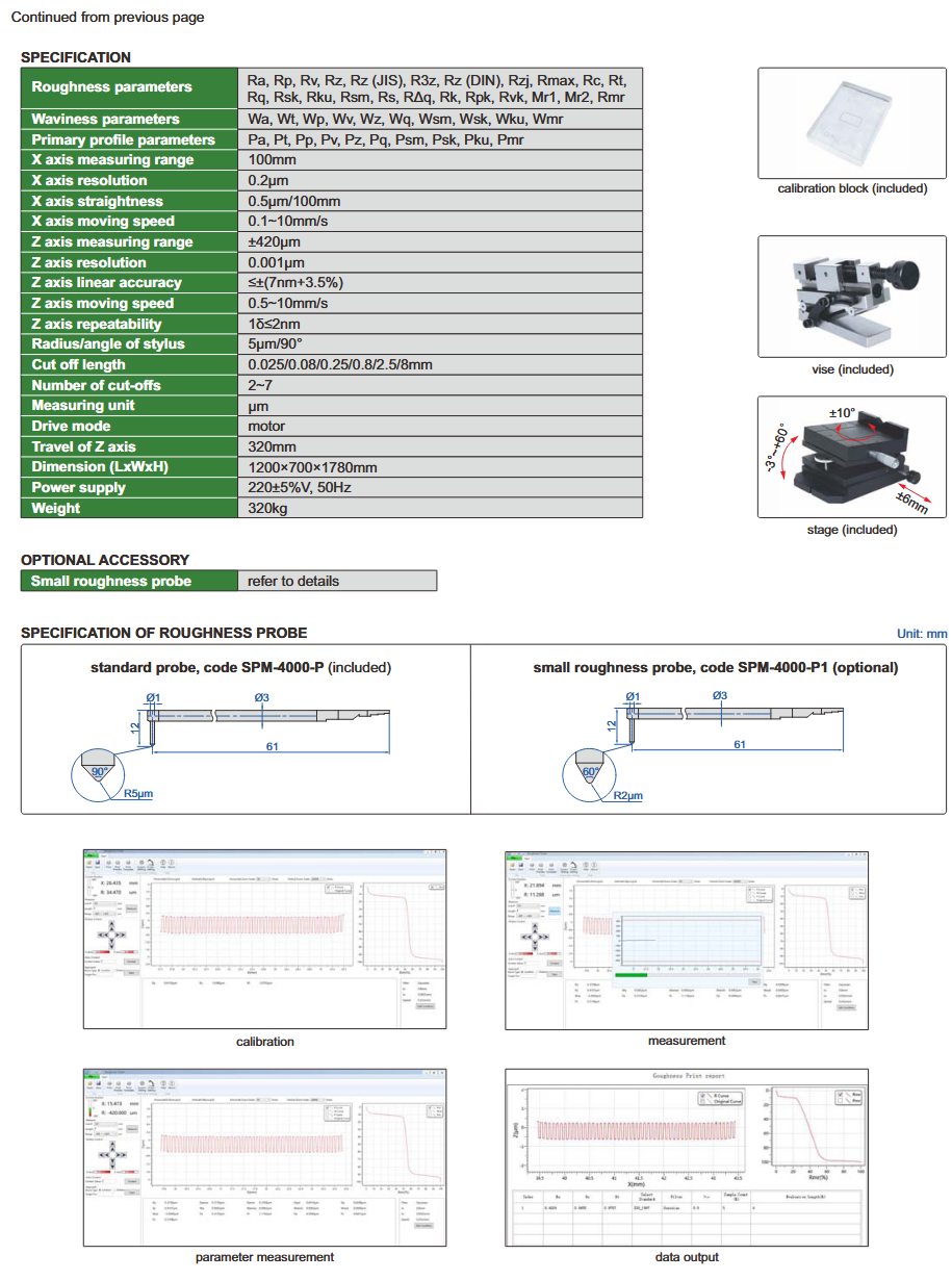 - Moguća evaluacija stotina parametara, uključujući: profil hrapavosti, profil valovitosti, primarni profil itd.