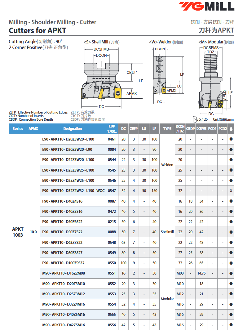 Štapno glodalo E90-APKT10-D25Z3W25-L100, YG-1