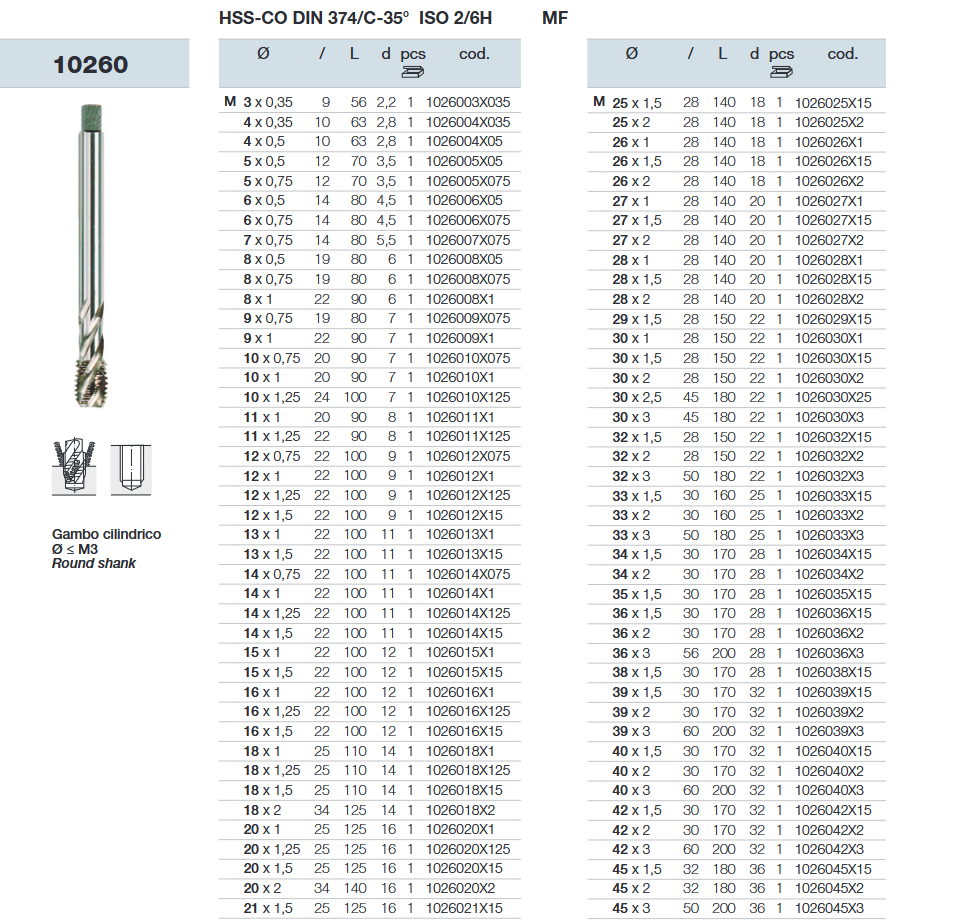 Ureznik strojni spiralni M20x2,5, KP60, DIN 376, BFT Burzoni