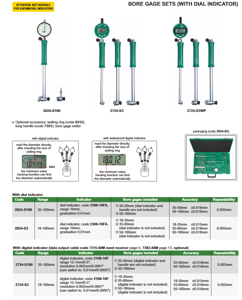 Set unutarnjih mjera (Dial Bore Gage Set) INSIZE 2824-S3