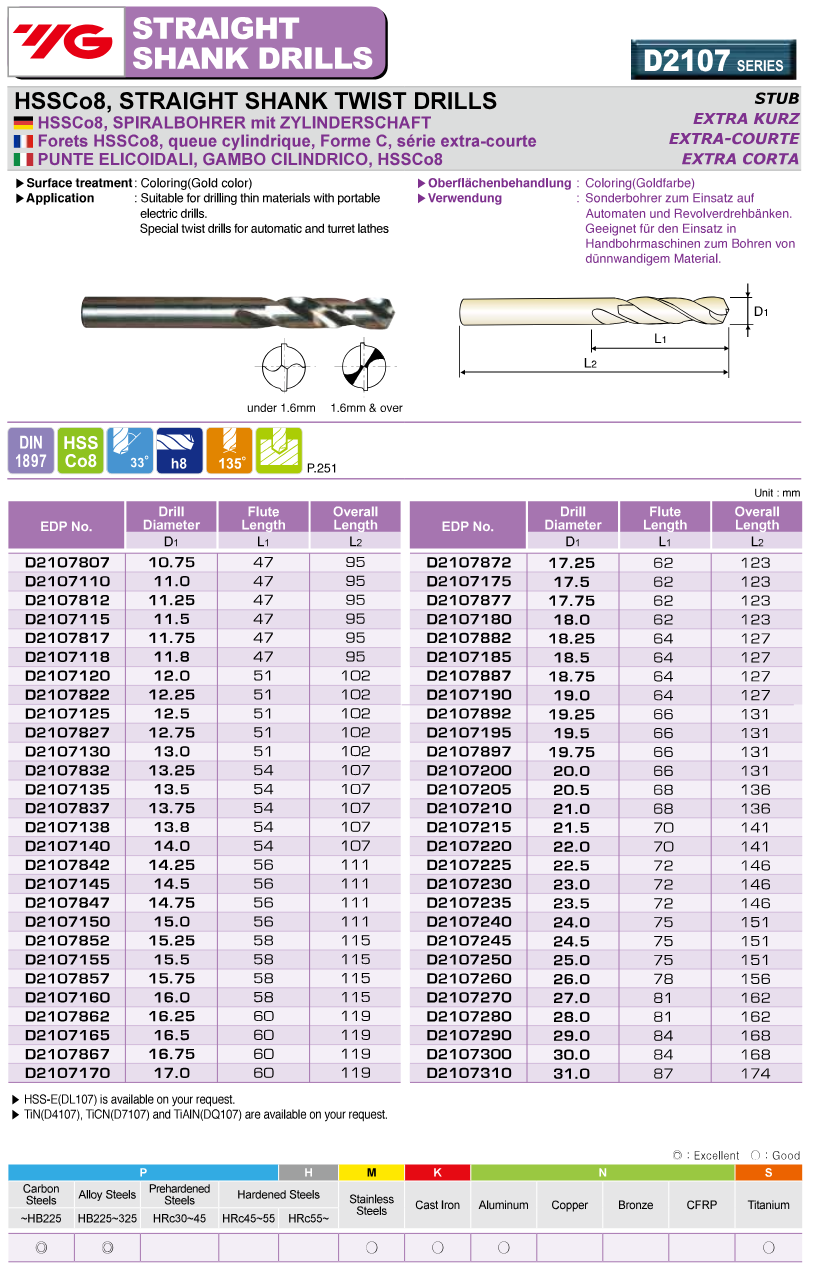 Svrdlo Ø17.5 mm, HSSCo8, DIN338, YG-1