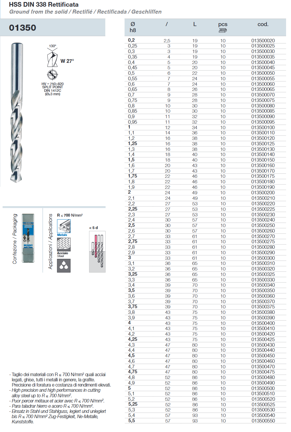 - Svrdlo Ø1 mm, HSS-G, SP130, DIN338, Krino