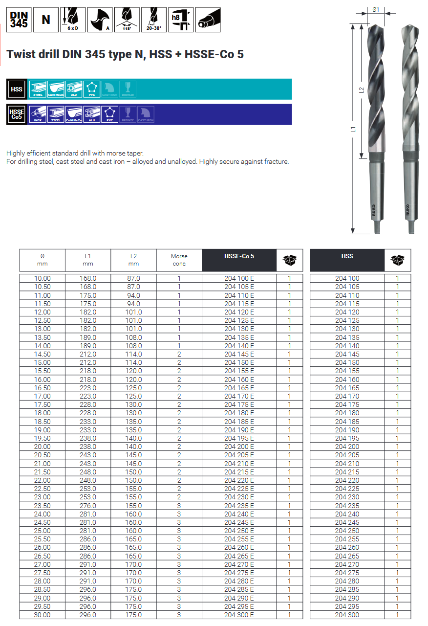 Svrdlo Ø13,5 mm, HSS-E, DIN345, MK2, RUKO
