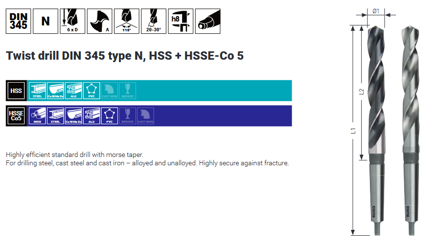Svrdlo Ø19,5 mm, HSS, DIN345, MK2, RUKO