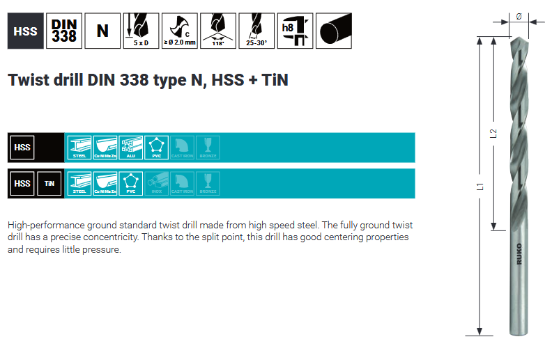 - Svrdlo Ø2,7 mm, HSS-G, DIN338, RUKO
