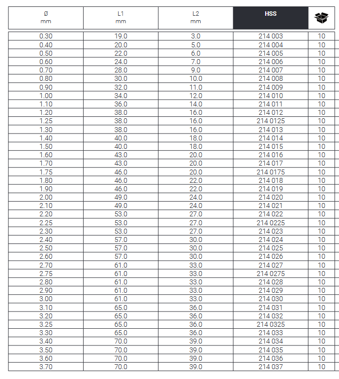 Svrdlo Ø1,0 mm, HSS-R, DIN338, GSR