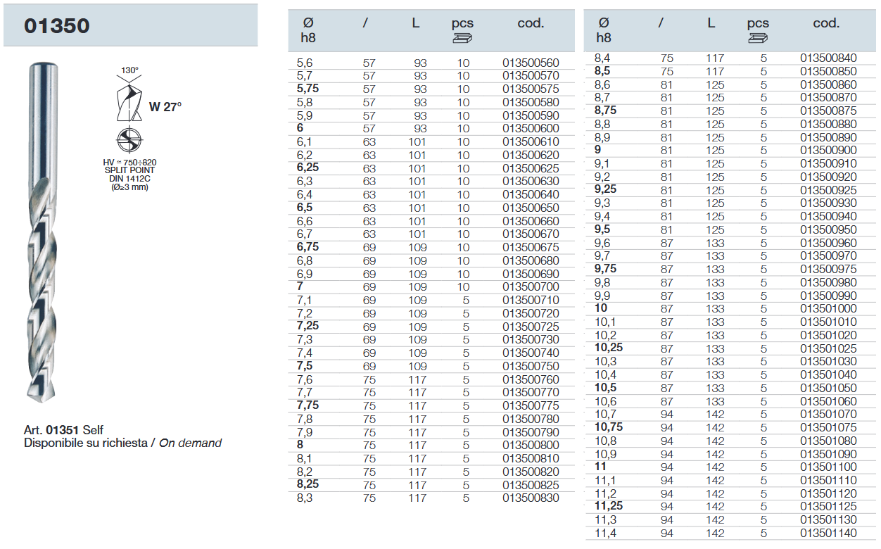 - Svrdlo Ø9,5 mm, HSS-G, SP130, DIN338, Krino