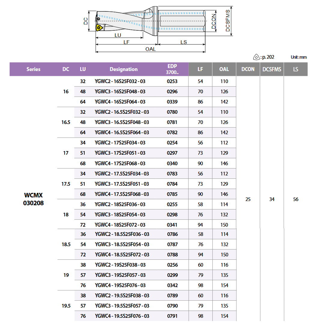 Svrdlo s pločicama Ø19 mm, YGWC4-19S25F076-03, YG-1