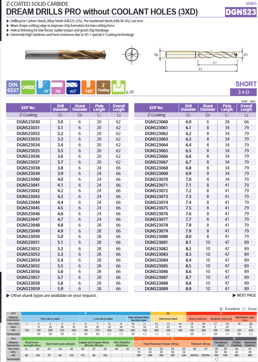 Svrdlo TM Ø6.3 mm 3xD DIN6537 Dream Drill-Pro, YG-1