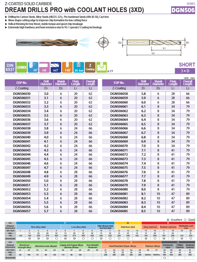 Svrdlo TM s hlađenjem Ø4.7 mm 3xD DIN6537 Dream Drill-Pro, YG-1