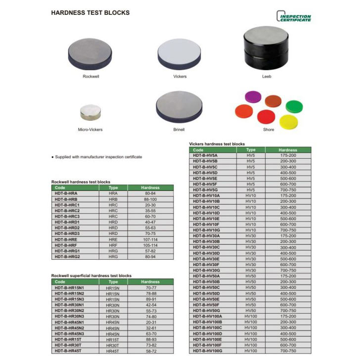 Testni blok HRC 35-55, Insize