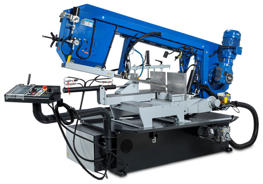 Obje glave za vođenje trake imaju automatsku regulaciju uvoda u rez, čime se povećava brzina, preciznost i vijek trajanja trake. Frekvencijski pretvarač omogućuje podešavanje brzine trake u rasponu 15 – 90 m/min. Postolje je opremljeno izmjenjivom posudom za strugotinu ili dodatnim transporterom za njezino uklanjanje. Ugrađena je i snažna četka za čišćenje trake.