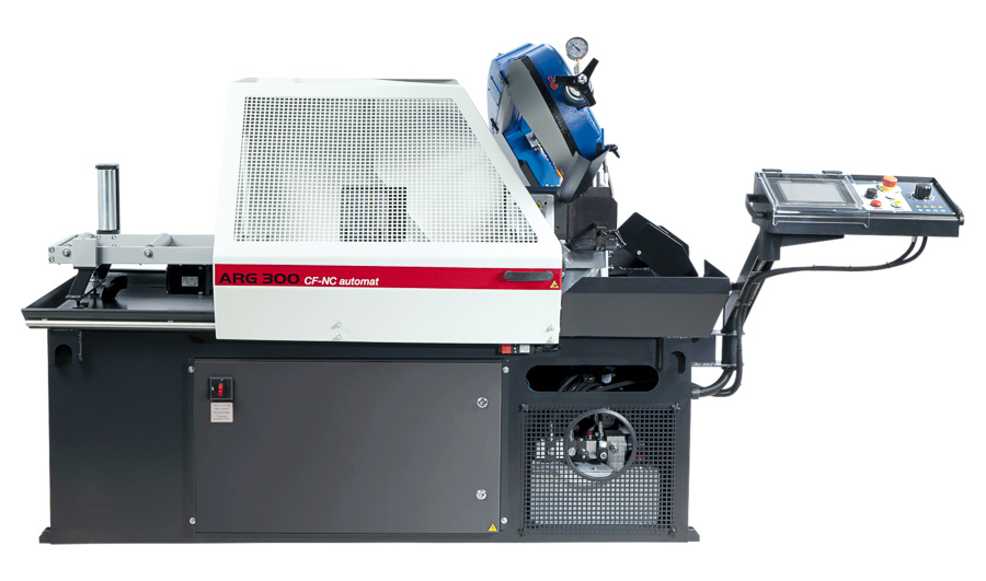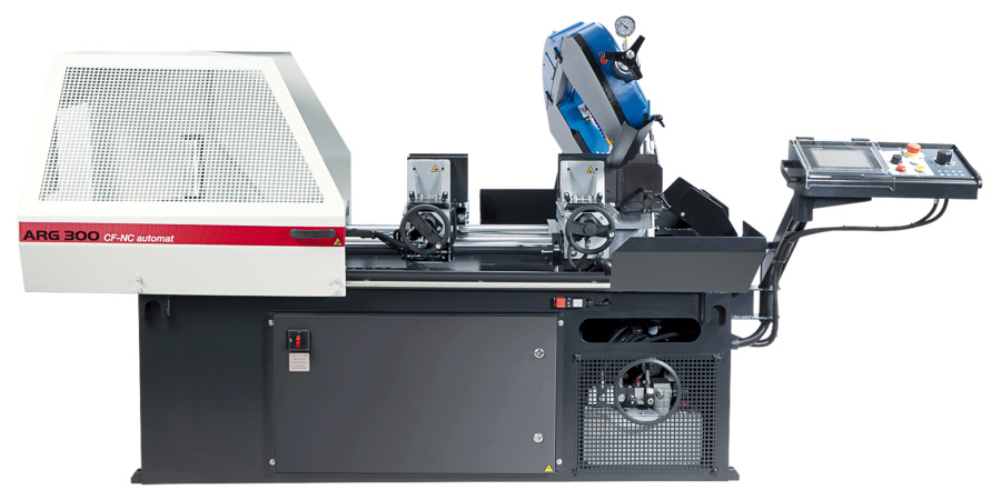 ARG 300 CF-NC automatska pila opremljena je pogonom obratka putem industrijskog servomotora s kugličnim vijkom i planetarnim prijenosnikom, što omogućuje visoku brzinu i maksimalnu točnost pri višestrukom pogonu dugih komada. Moguće je podešavanje tri brzine pogona – 27, 42 ili 50 mm/s, ovisno o duljini i masi obratka.