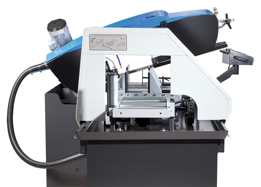 Industrijska traka 27 x 0,9 mm omogućuje rezanje širokog spektra materijala, uključujući nehrđajući i alatni čelik. Kut rezanja može se kontinuirano podešavati u rasponu 90° – 45°, a rezanje pod kutem moguće je i u automatskom načinu rada.